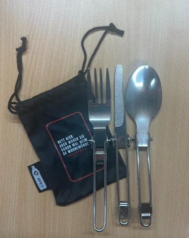 Das SVW-Outdoor Besteck ist perfekt für dich unterwegs. Es nimmt kaum Platz weg und lässt sich einfach zusammenklappen, sodass du es bequem in deinem Rucksack verstauen kannst. So bist du beim Camping, Wandern oder Picknick immer bestens ausgestattet.